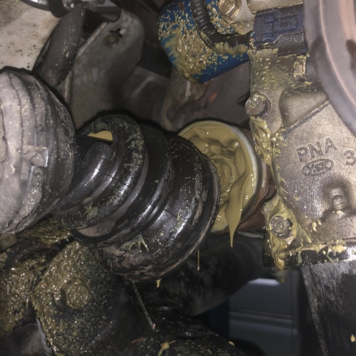 ドライブシャフトのブーツが破れてグリスが