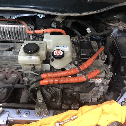 ハイブリッド車なので診断機を接続しながら作業を進めていきますが、最初のうちはブレーキペダルを踏んでもエアーが配管内にあるので踏み応えがなく不安だらけです(ToT)