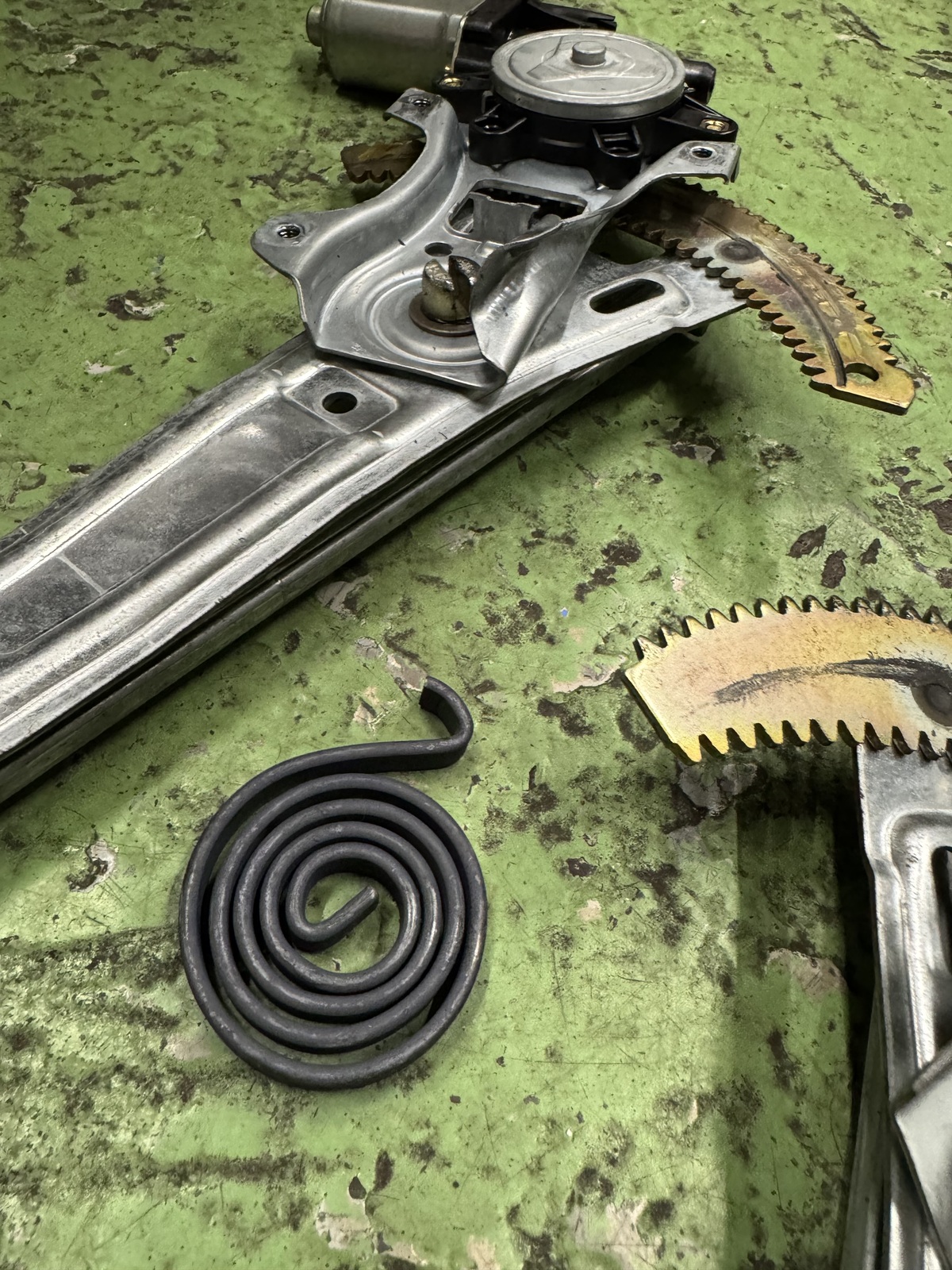 ガラスの上下が出来なくなっていました😓渦巻き状のスプリングが脱落していました😅