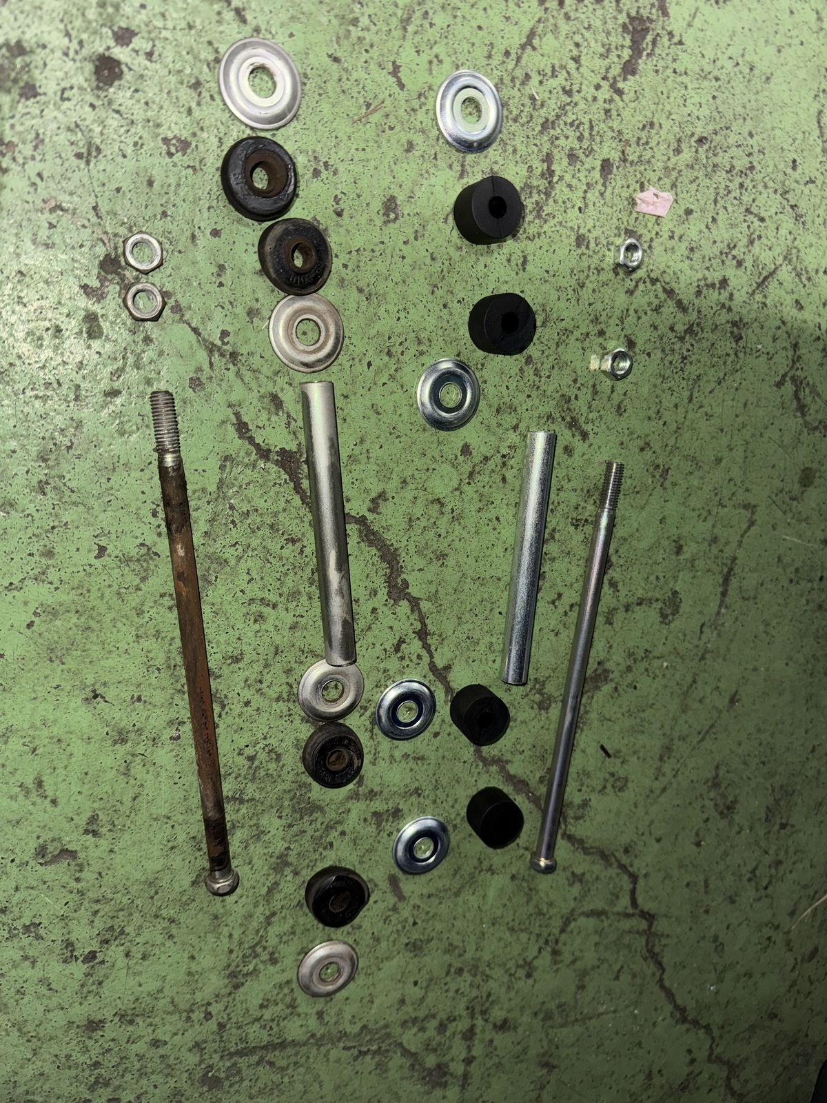 ゴムブッシュが潰れて亀裂が入ってます😅