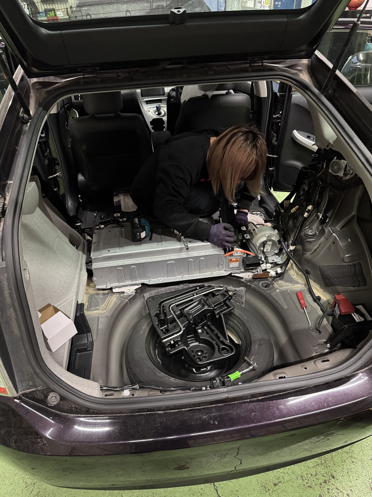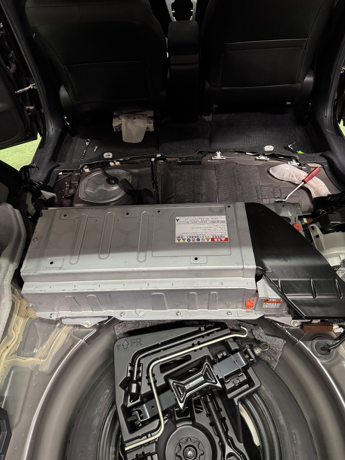 後部座席やカバー類を外していくと、バッテリーが見えてきます🙂
