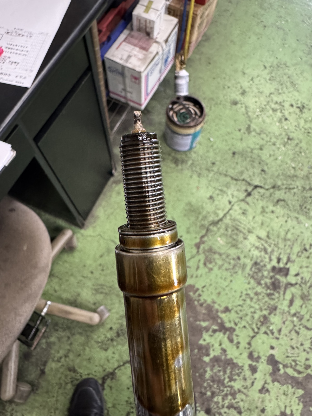 プラグホールにもオイルが侵入して、プラグを外すと工具までオイルが付着しました😭