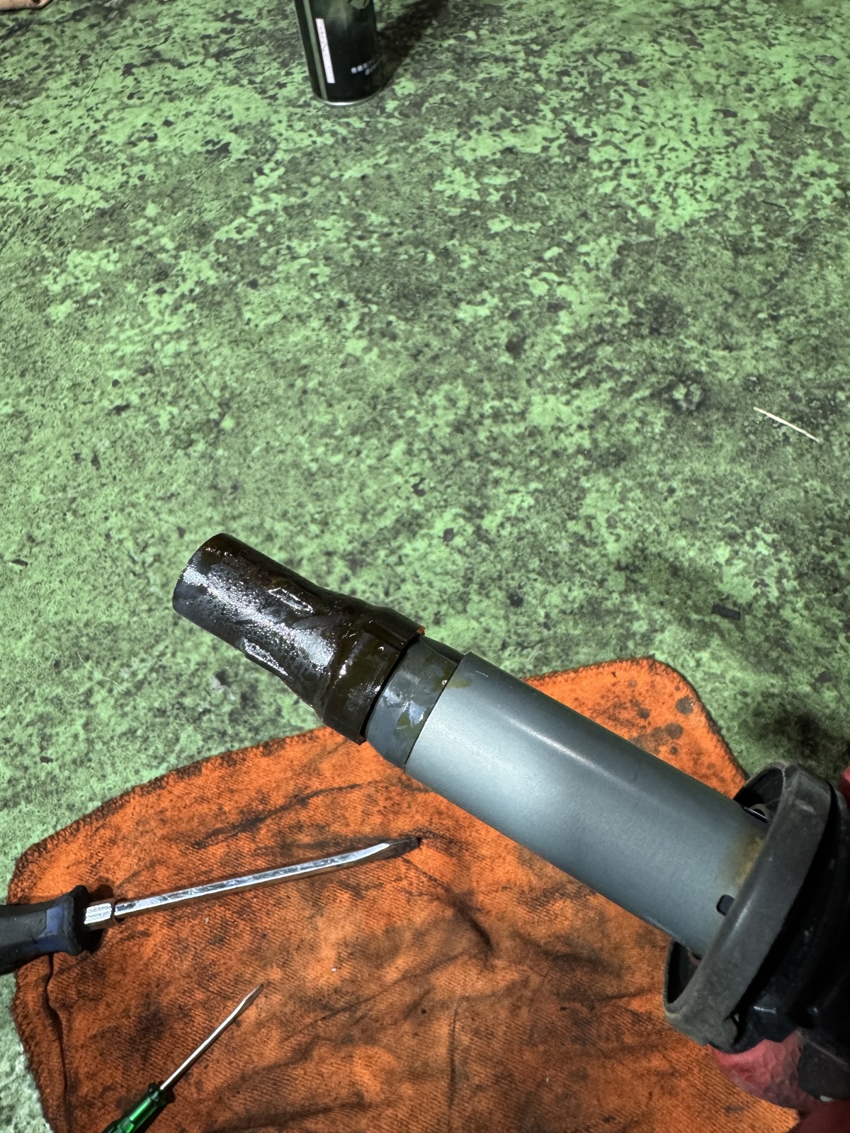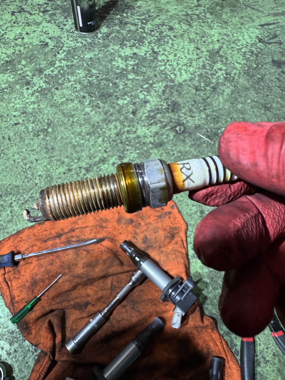 イグニッションコイルの先端部もオイルの付着が見られ、プラグホール内にもオイルが回っているようです😅